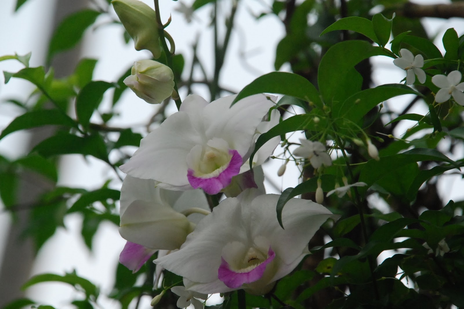 We paid MiL a visit yesterday, taking along 5 grape seedlings as promised earlier. Flowering season was at its peak there. A big orchid, and little flowers attracted our attention. They contrast well on size, big and small, and yet they were not envious of one another.